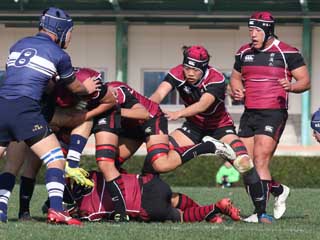 | 前12分 | 桐蔭学園。ゴール直前左中間ラックよりB右へ持ち出し右中間にトライ。Mゴール不成功 | 5−0 |