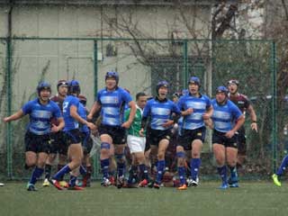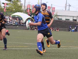 後半は風上に立った南山がトライを重ね,勝利した。 |